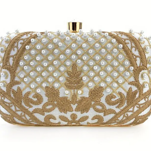 Ladies Bag With Pearls / Silver And Gold / Handmade