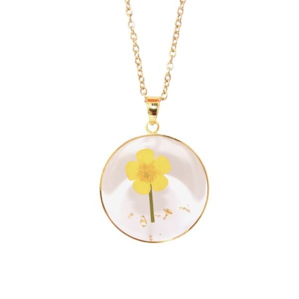 Necklace with Natural Dried Yellow Flowers, 18K Gold Plated