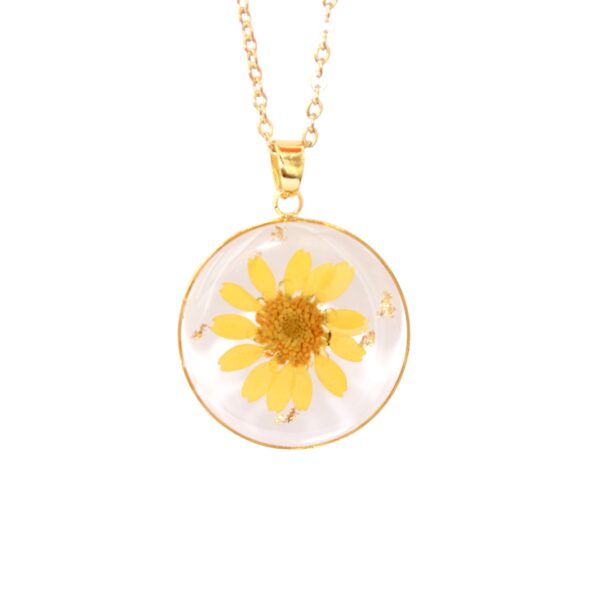 Necklace with Natural Dried Daisy, 18K Gold Plated