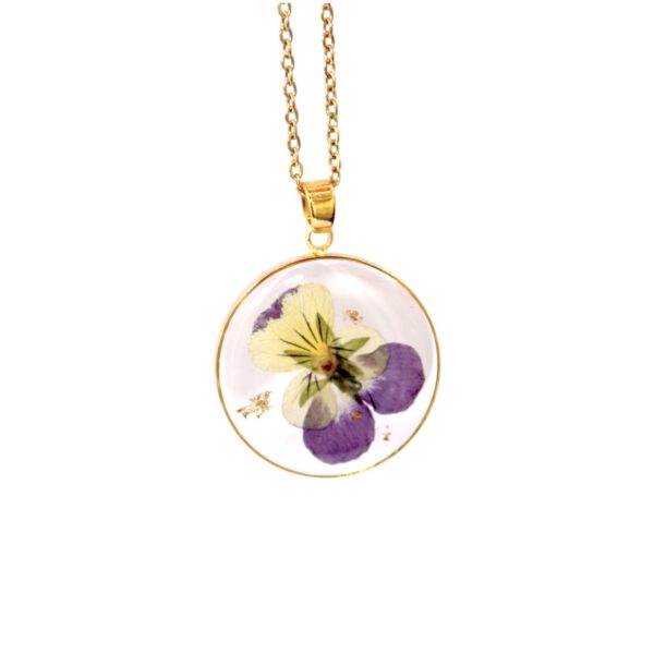 Necklace with Natural Dried Violet, 18K Gold Plated